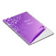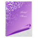Cuaderno encuadernado del alambre elegante hecho en una lavanda bonita, con los gráficos del encrespados encima de la esquina inferior, mostrando un blanco en el modelo blanco del damasco debajo. Los gráficos preciosos de un flourish de lujo blanco, adornan el lado superior izquierdo del cuaderno. El texto blanco de la escritura está listo para personalizar para leer cualquier cosa que usted quiere. Grande para las duchas nupciales, los bodas, personal, escuela, o negocio.