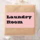 Lavandería con etiquetas móviles en rosa