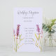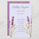 Esta plantilla de hoja de programa de bodas presenta un elegante fondo morado claro adornado con delicadas flores de lavanda vintage, creando un diseño encantador y cautivador. Ideal para una celebración de estilo provenzal o rústico boda.