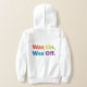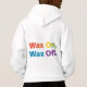 Este diseño de camiseta muestra la icónica frase "Wax On, Wax Off" en un tipo de letra negrita y multicolor. Las palabras están apiladas, y cada una es de un color vibrante diferente, lo que le da al diseño un aspecto juguetón y retro. El diseño es sencillo y se centra en el significado de humor y cultura pop de la famosa instrucción de la película de artes marciales clásicas.