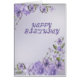 Esta tarjeta de cumpleaños de ensueño de The Botanical Press está adornada con delicadas flores de acuarela en tonos lavanda, lila y violeta suave. El diseño, que enmarca un clásico "Cumpleaños feliz" en la combinación de escritura morada, irradia belleza pacífica y encanto intemporal. Con un fondo de tonalidad fría y elegantes rincones florales, es perfecto para enviar sentidos deseos de cumpleaños con un toque tranquilo y elegante.