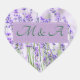 Estos pegatinas del corazón con lavanda suave y verde inspirados en la belleza de las flores de lavanda del campo tienen un lugar para las iniciales personalizados para su celebración boda.