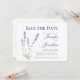 Lavender SAVE THE DATE es una hermosa fuente de primavera inspirada en la colección de Bodas de Lavanda Infusada. Para realizar los cambios, seleccione el vínculo "Personalizar esta plantilla" para introducir su propia información. Si necesita hacer ajustes, haga clic en el botón "Haga clic para más personalizares". Asegúrese de comprobar cuidadosamente la vista previa, ya que LO QUE VEN ES LO QUE ESTÁ IMPRIMIDO! Necesita ayuda con el diseño o la ubicación, haga clic en el enlace "preguntar al diseñador". Foto de ejemplo: Karina Thomson - Unsplash