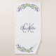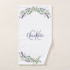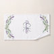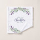 White background, decorated with lavender florals and eucalyptus greenery. Personalize and add a name and monogram initials. The name is written with a modern hand lettered style script.