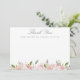 Un boda bonito le agradece su tarjeta plana para escribir una nota para apreciar a sus invitados bodas. Este diseño presenta un borde inferior de rosas de acuarela rosa y hojas verdes con un toque de purpurina falso. "Gracias" está en letra gris. Personalice con "from the new mr. and mrs.) en el tipo de letra gris serif.