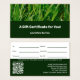 The 3.5" x 2" landscape-format Lawn Care Maintenance Company Gift Certificate is part of the Lawn Care Business Card & Marketing Items collection. The front showcases the phrase "A Gift Certificate For You" under a lawn image in a modern sans serif font, along with space for your lawn care business name, giving it a polished and professional look.