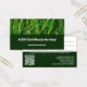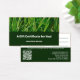 The back is organized with customizable fields for the recipient and sender's names, the gift certificate's value and expiration date, and the issuer. There is also a designated area for your company’s tracking code. Below these fields, there is ample room for terms and conditions to ensure clarity.
