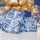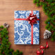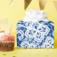 Lazo blanco sobre papel de envolvimiento azul