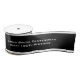 Esta cinta tiene un borde blanco que coincide con el color del texto impreso en un fondo negro. Personalice este diseño blanco y negro con texto repetido que sean sus propias palabras, citas o nombres, para cualquier ocasión.Este diseño es el texto predeterminado para: Cien años, centenario y un nombre. Puede ser usado para cualquier ocasión para envolver regalo, artesanía o decoración para un fiesta. Este diseño también se puede encontrar en blanco/negro, dorado/blanco y dorado/negro. El texto se repite aproximadamente cada 12 pulgadas.