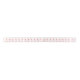 Cinta satinada con un patrón de corazones rojos en caída sobre fondo blanco.