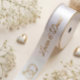 Esta cinta personalizado de oro blanco con los nombres y la fecha es genial para envolver regalos y hará que tus cajas de regalo o favores luzcan muy lindos.