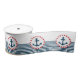 Diseño náutico con decoración de ancla en forma redonda sobre fondo rayado azul y blanco