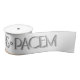 "Doña Nobis Pacem" (Latín para "Danos paz"), una elegante oración navideña para Navidades o un saludo a cualquier hora, aquí en cinta de satén, en tonos gris plateado, para un hermoso y único envoltorio regalo.