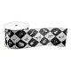 Un gran regalo para cualquier músico o amante de la música, este diseño fresco presenta un moderno y elegante patrón de cuadros de cheques en blanco y negro con varias notas musicales e instrumentos musicales en colores alternos. Incluye pianos, trompetas, tambores y saxofones con notas musicales y arcos de trineo.