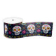 Esta cinta satinada del Día de Muertos es una vibrante celebración de la vida y el recuerdo. Adornado con intrincados cráneos de azúcar, adornado cada uno con coloridos motivos florales, captura la esencia del Día Mexicano de los Muertos. El fondo oscuro crea colores brillantes de pop rojo, amarillo, azul y blanco, creando un sorprendente contraste. Pequeños puntos y detalles florales añaden encanto a la fiesta.