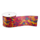 Fiesta Circles tiene círculos de varios tamaños en colores coordinados de naranja, amarillo, rojo, verde azulado y morado sobre una cinta ancha para muchos usos.