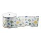 Lazo De Raso Flores azules y amarillas con patrón de follaje