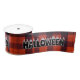 Spooky Halloween ribbon featuring ghost candle lettering on bold red plaid. Perfect for gift wrapping, party décor, and seasonal crafts.