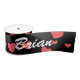 Cintas personalizados para envolver regalos. Nombre en blanco con los corazones rojos sobre un fondo negro. El nombre del niño se puede editar para hacer esta cinta única.