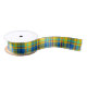 Lazo De Raso Patrón azul, amarillo, rojo plasmado, tartán