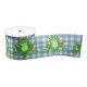 Ranas verdes preciosas sobre un fondo de gingham azul acuático y blanco.