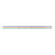 Arte digital abstracto de rayas arcoiris de color más claro delineado por el color sólido más delgado, contra un fondo blanco.