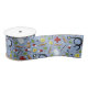 Cinta única de regalo de temática médica con suministros de salud y patrón de flores en fondo azul.