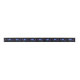Símbolo de infinito violeta y brillante con colibrí azul sobre fondo negro. Neón.