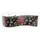 Create a gorgeous, high-end presentation with this stunning dark botanical Christmas ribbon. The design features detailed, traditional red poinsettias, vibrant holly leaves, and berries set against a deep black background. The contrast makes the rich colors pop, while tiny snowflakes add a wintery, festive touch. This ribbon is perfect for an elegant, classic, or gothic Christmas theme, adding a sophisticated and luxurious finish to gift wrapping, floral arrangements, wreaths, and holiday decorations.