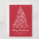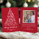 Envía alegría festiva de vacaciones con esta tarjeta de Navidad que presenta un árbol caprichoso dibujado a mano de lazos sobre un fondo rojo audaz. “Feliz Navidad” se muestra en escritura juguetona, con personalización para el nombre de su familia y año. La parte trasera destaca una foto cuadrada con su mensaje de vacaciones que se muestra a continuación, creando una forma alegre y personal de compartir saludos.
