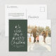 ¡Te deseamos una Feliz Navidad! Esta tarjeta fotográfica de vacaciones muestra un mensaje clásico en forma de árbol de Navidad divertido sobre un fondo verde. Con una foto en la parte delantera, es una buena manera de enviar Navidades de ovación a amigos y familiares. El tratamiento de tipo lúdico tiene forma de árbol de Navidad y está salpicado de moquetas nevadas. La parte posterior tiene espacio para un mensaje personalizado o se puede dejar en blanco.