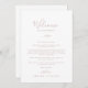 Estas cartas de bienvenida y tarjetas itinerarias de color rosa pálido son perfectas para una elegante boda. El diseño presenta una sencilla silueta verde de color rosa claro y un estilo minimalista clásico. La parte delantera de la tarjeta incluye una carta de bienvenida y la parte trasera de la tarjeta incluye el itinerario del boda. Estas notas son perfectas para bodas de destino y bolsos de bienvenida para huéspedes del hotel.