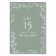 ¡Nos encantan estos números de mesa de moda, Leaf Sage Green Elegant! Sencillo, elegante y muy bonito, tiene un marco de hoja dibujado a mano. Está personalizado en una tipografía elegante, y acentuado con caligrafía a mano, una exclusiva en línea y uno de nuestros diseños más preciados. Esta moderna elegancia clásica hará que sus huéspedes no se olviden pronto. Copyright Anastasia Surridge para Elegant Invitaciones, todos los derechos reservados.