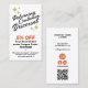 Cupón de descuento para la captación de ojos para clientes leales - el reverso incluye código qr, iconos de redes sociales y colocación de logotipos