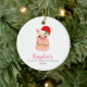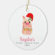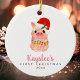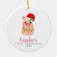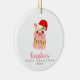Lechón Primer Personalizado de Navidad Ornamento cerámico — La preciosa plantilla personalizada de adornos de navidad incluye un adorable lechón de color de agua y una cervecería lleva un sombrero de santa y un enredado en luces de vacaciones. Los cuadros de texto permiten una fácil personalización del nombre de un bebé en un tipo de letra manuscrita en negrita y en negrita en caligrafía rosa, y el año de nacimiento en un sans serif simple y minimalista. Ambos lados de esta decoración personalizada de árbol de keepsake son idénticos.