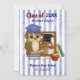 Delicioso académico Owl Graduation in Mortar cap sentado en algunos libros al lado de un borde fotográfico de pizarra. Fondo de banda azul claro. Reemplace con su foto y personalizar las áreas de texto de delante y atrás.