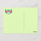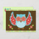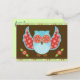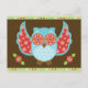 Lechuza azul y roja en la postal marrón y verde