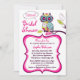 Un bonito ilustracion retro de una lechuza luminosa de colores vivos azules, amarillos y naranjas rojos y colores cálidos rosados con motivos florales. Esta cálida invitación rosa es perfecta para una ducha de novias divertida, brillante y ondulada. Si le gusta esta invitación, pero puede que desee algunos cambios, haga clic en el botón de "contacto". Gracias.