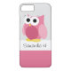 Personalizado funda para iPhone 7 con un búho rosa chistoso ilustrado pero lindo y personalizado con su nombre o texto.