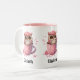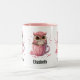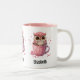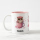 Una taza con la adorable imagen de un búho sentado en una taza de café. Los corazones se cercan y un solo rosa se coloca en la parte inferior de la taza.