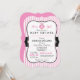 It's a Girl! Una pequeña y elegante ducha de bebé con tema rosa y negro invita a las rayas rosa pastel con un estilo formal vintage. Ideal para búhos, duchas para bebés con temática animal de bosque. Invitación de forma de corchete retro.