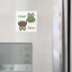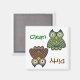 Imán capilar de lavavajillas capilar hecho en blanco, con lechones gráficos personalizados en verde y marrón. En un extremo del imán hay un búho verde con el texto verde limpio, en el otro extremo hay un búho marrón, con texto marrón leyendo Sucio. Una forma divertida de decir si tus platos están limpios o sucios, y hace una linda idea de regalo.