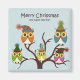 Estos búhos de ojos grandes con pompones a sus gorras se han reunido en este árbol para desear a todos una "Feliz Navidad y Feliz Año Nuevo". El cielo azul en el fondo muestra que los copos de nieve están cayendo y las ramas ya tienen algo de nieve apilada. Imagen vectorial de navidad con licencia extendida de Fotolia.com - © ykononova - Fotolia.com.