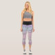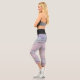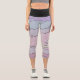 Le motif abstrait aux tons de violet, mauve et rose est ancré par une bande de taille noire audacieuse, ajoutant une touche graphique. Sa coupe taille haute et sa matière respirante en font un vêtement idéal pour le yoga, le pilates ou un look athlétique tendance.