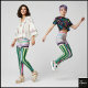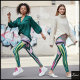 Las piernas de una mujer elegante con las piernas a rayas brillantes, resaltando un diseño de moda 2 IN 1 perfecto para cualquier ocasión.