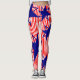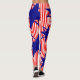 Estas leggings tienen un moderno diseño de mediados de siglo del 4 de julio de líneas verticales rojas con estrellas azules en un campo de blanco.