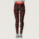 Diversas leggings coloridas adornadas con cerezas rojas brillantes sobre un fondo negro.