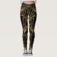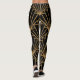 Estas leggings tienen un diseño Art Déco de diamantes y triángulos en oro sobre un campo de negro.