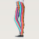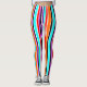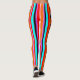 Estas leggings tienen un diseño simple de rayas verticales de espesor variable en rojo, naranja, morado, negro, azul claro y blanco.