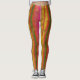 Leggings en rayas multicolores con estrellas de oro falsas. Los colores son dorado, verde, naranja y rosa caliente.